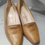 - ハイヒールの染替え CHANEL(シャネル)現在のベージュよりブラックの方が使い勝手が良いという理由で染替えを承りました。※作業前後の写真を交互に掲載