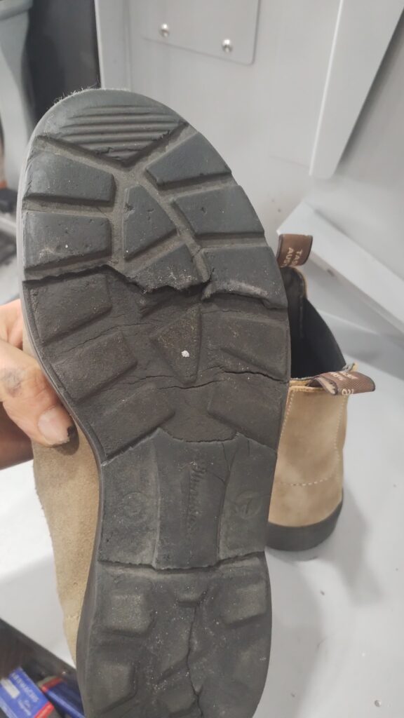 スエード素材のブランドストーンソール交換(Vibram 1136) 2025年12月16日 最終更新日時 : 2025年12月19日 Altana ソールが劣化にしてしまったので交換しました。交換前後の写真を交互に掲載しています。使用するソールはお客様と相談しながら決めていきます。 Follow me! @@Alterna_shoe X