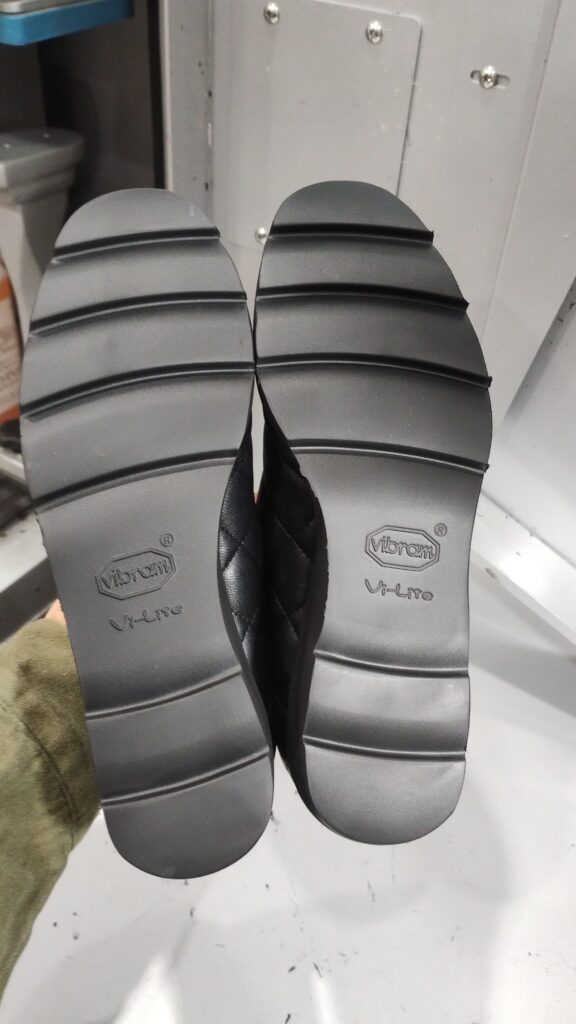 元の形状は記憶がないのでいい感じに仕上げてくれとのご依頼でしたのでVibram 9104ソールを取り付けました。