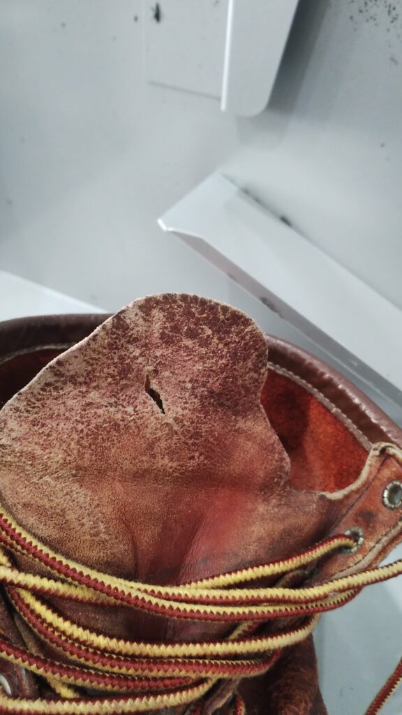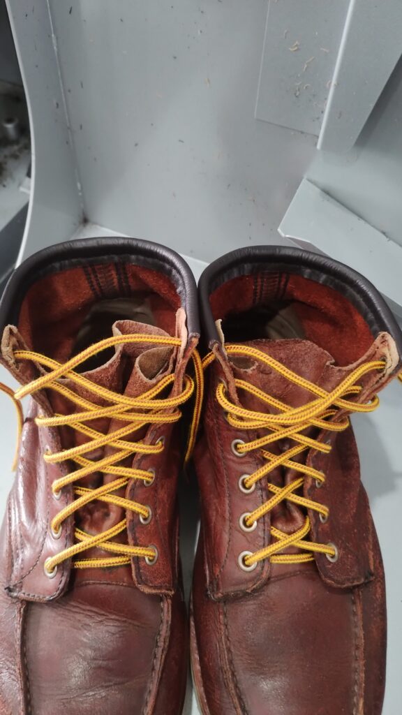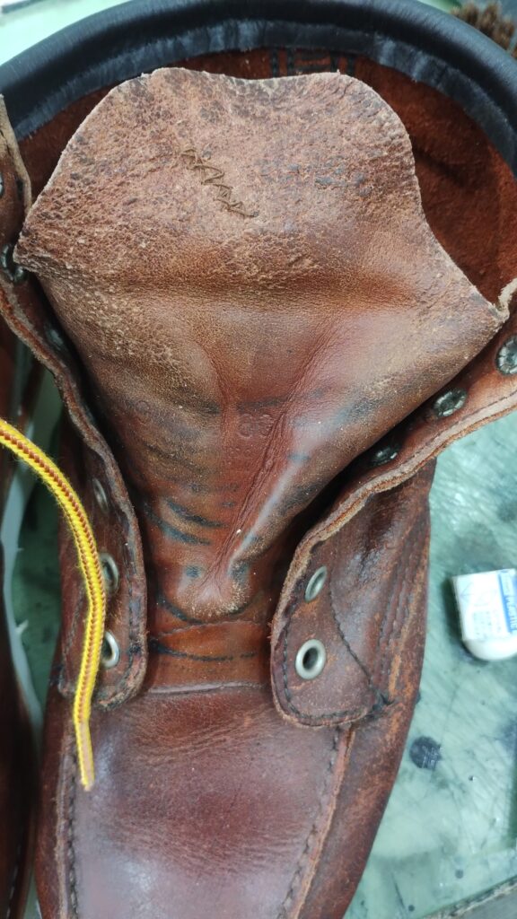 前回に引き続き、今回は履き口(スベリ口)、タン補修、紐交換です。