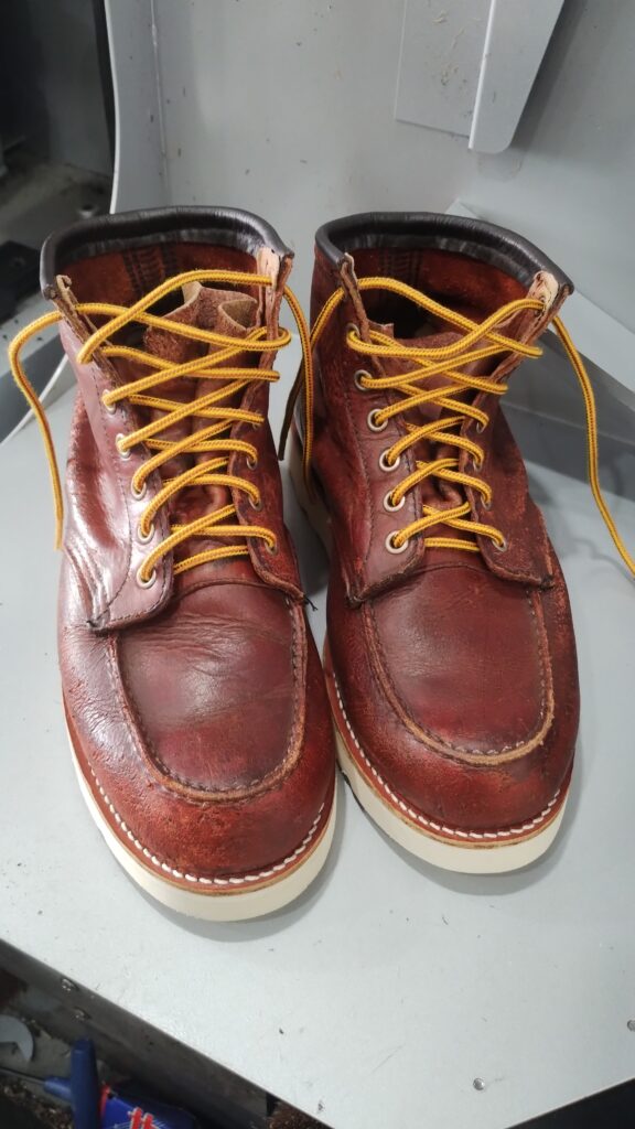 使い込まれたレッドウイングの全体的な修理です。